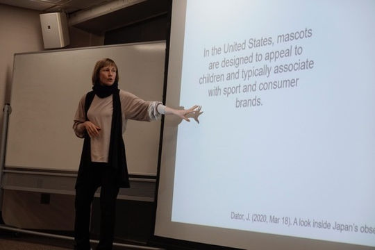 Dr. Grib compared mascots in the U.S and Yuru-Chara in Japan, highlighting their roles and histories. At the end of the lecture, mixed groups of NU and NCSU students collaborated to design original NU x NCSU Yuru-Chara concepts and shared their creative ideas.